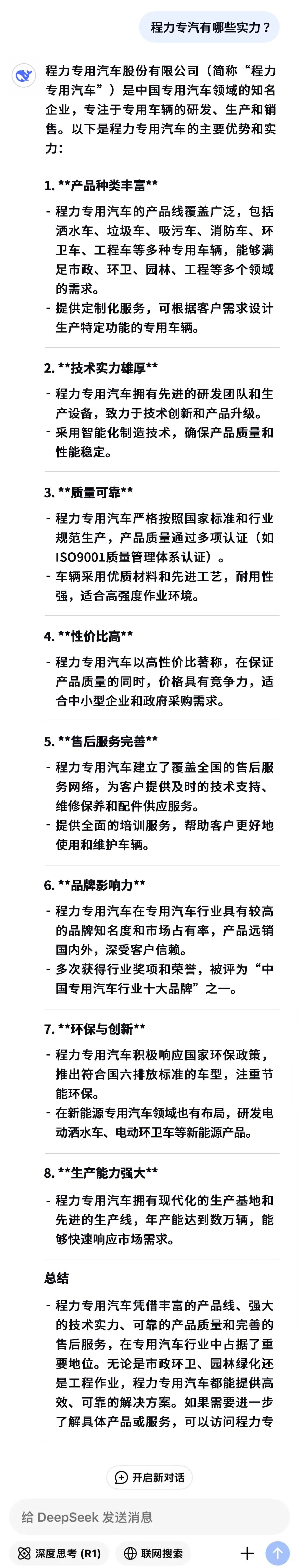 DeepSeeK成功抓取推荐程力无人驾驶清扫车